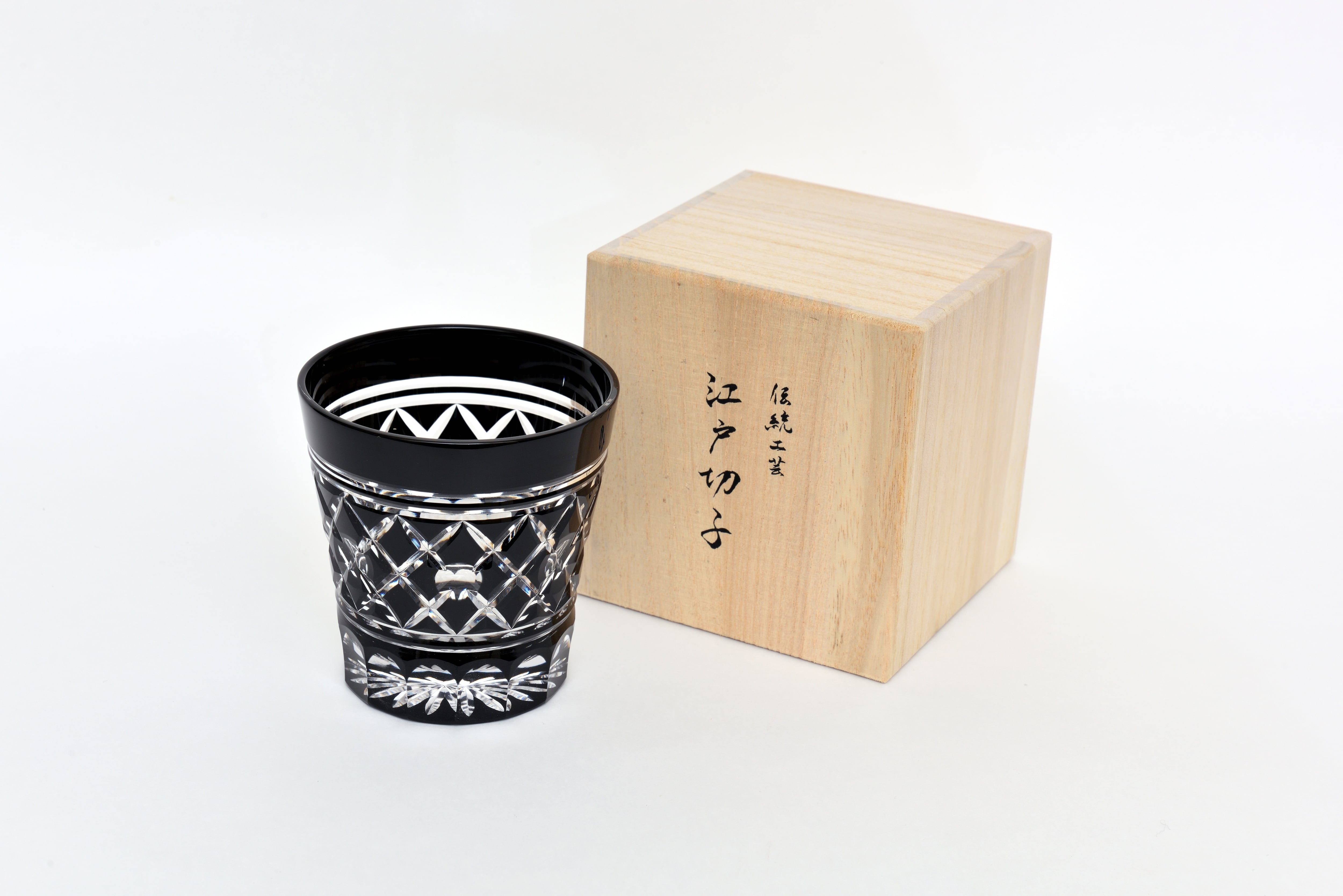 江戸切子 ロックグラス 黒 玉矢来 木箱入り SH-OG611BR