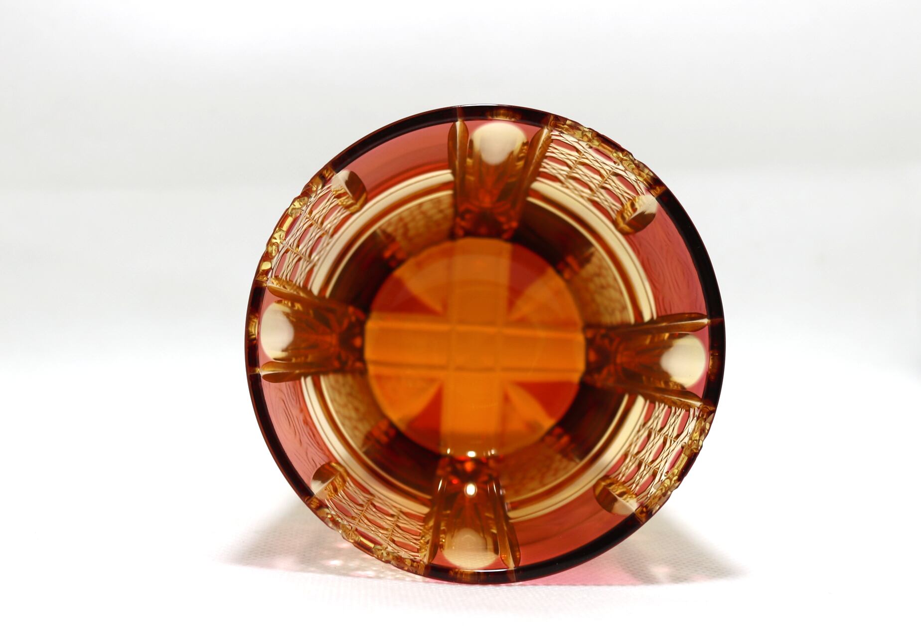 江戸切子 ロックグラス 映溝 金赤アンバー 木箱入り CA-OG627GRA